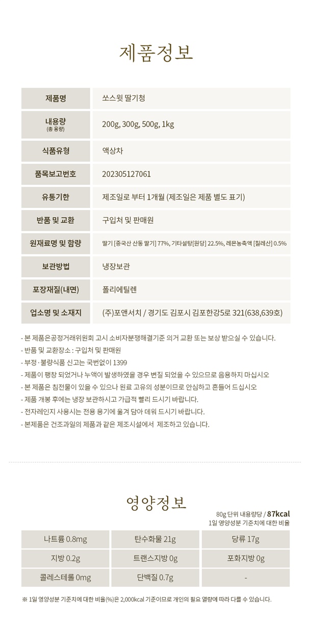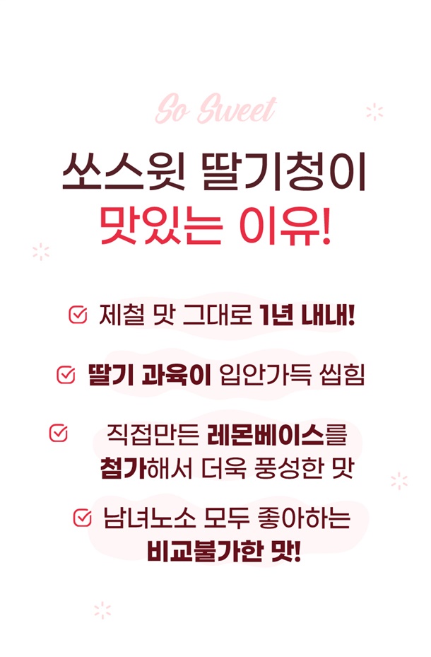 입안가득 딸기과육이 씹히는 풍성한 맛의 딸기청